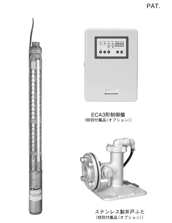 | 發(fā)動機(jī) | 屏蔽潛水電機(jī) 三相200V(55kW為400V) 同步 轉(zhuǎn)速 50Hz:3,000min-1,60Hz:3,600min-1 |